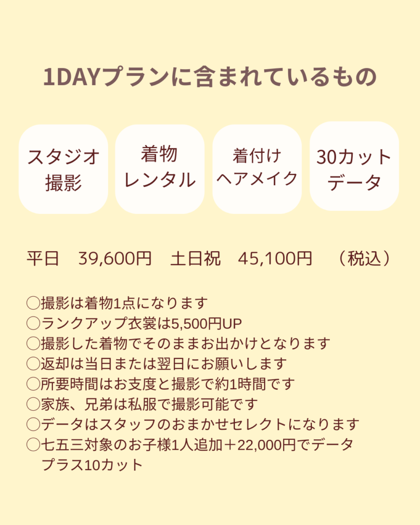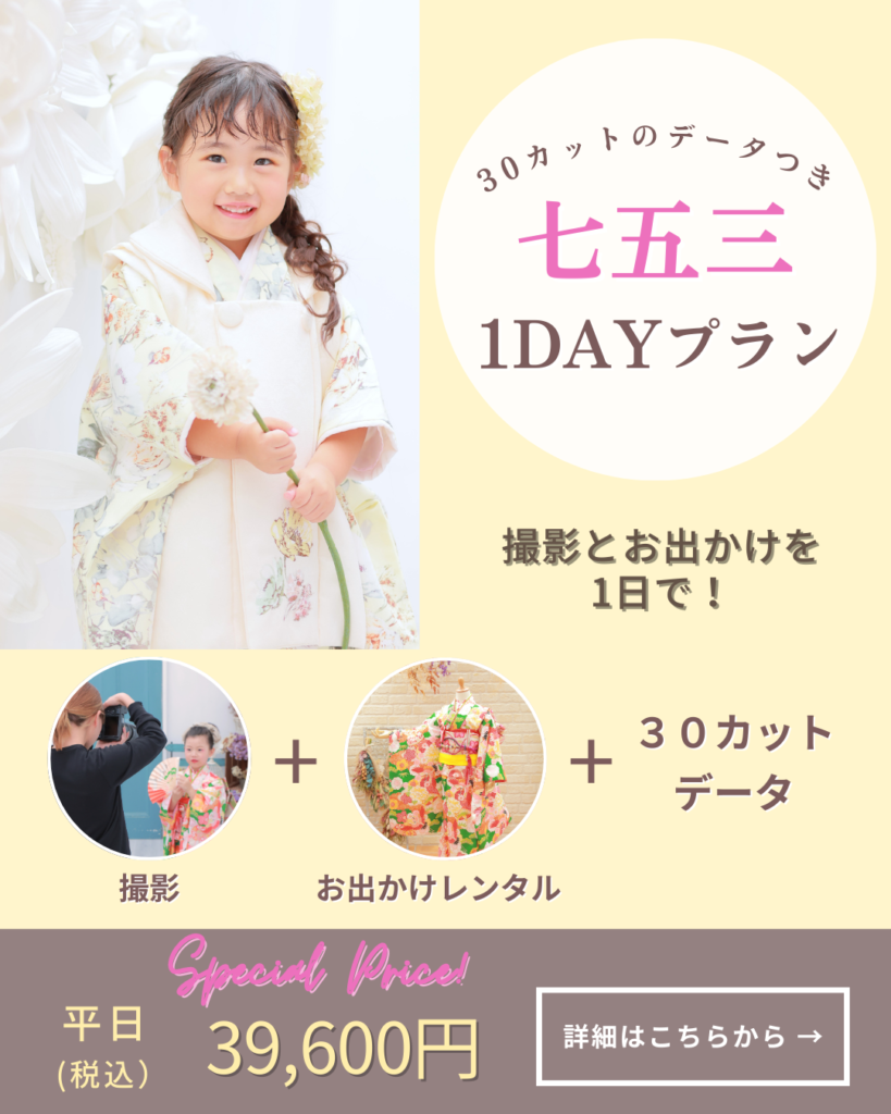 そんなお忙しいパパママにおすすめの七五三1DAYプランをご用意いたしました。